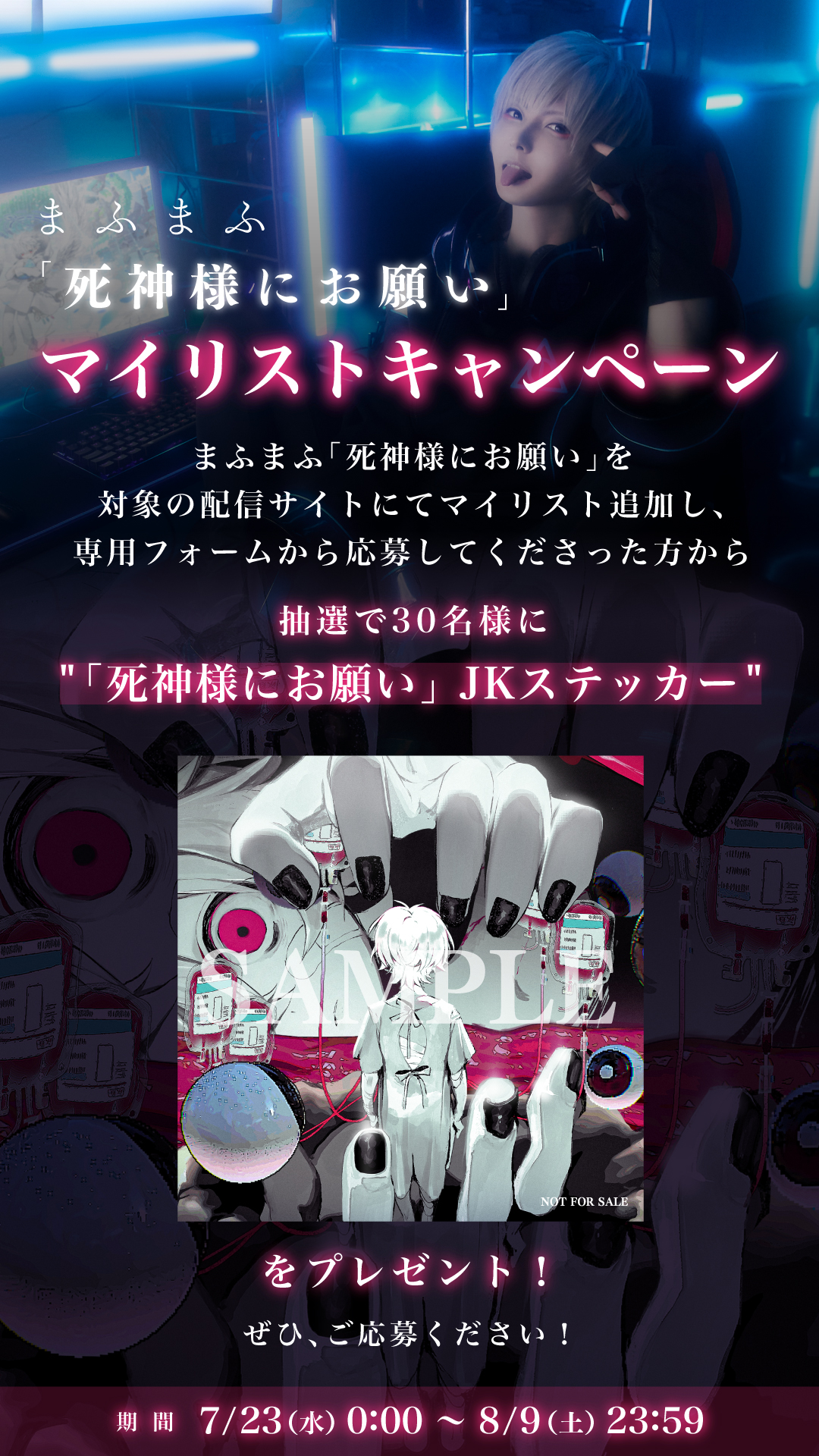 先月YouTubeで公開した新曲「死神様にお願い」が、本日7月23日(水)より各音楽配信ストアで配信スタートしました!