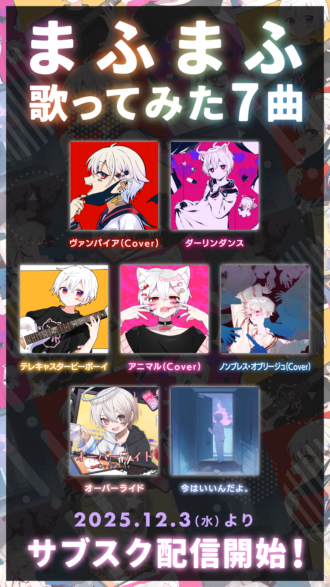 10月の配信に引き続き、まふまふの「歌ってみた」7曲のサブスク配信が明日 12月3日(水)より開始となります!
